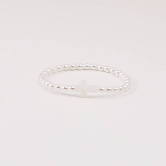 HOLY WATER STRETCH BRACELET IN CRYSTAL PEARL